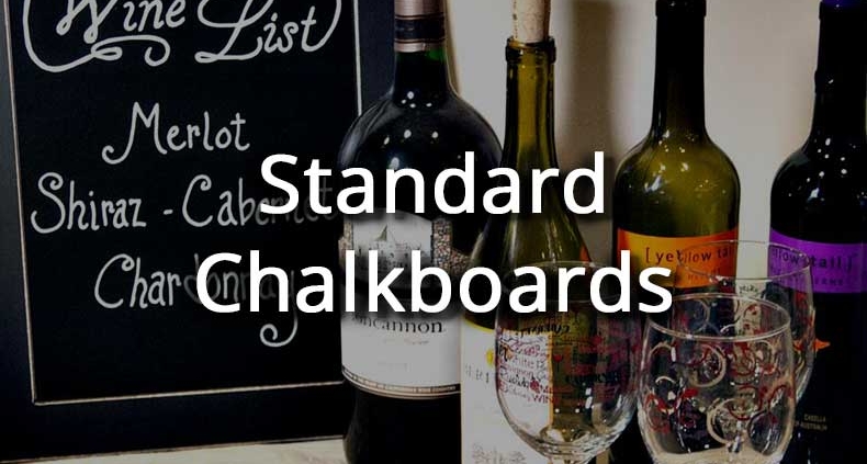The standard chalkboards feature our ChalkFlex material mounted to a solid hardboard. Get the look and feel of a real chalkboard, with a stain-resistant surface that can be used again and again.