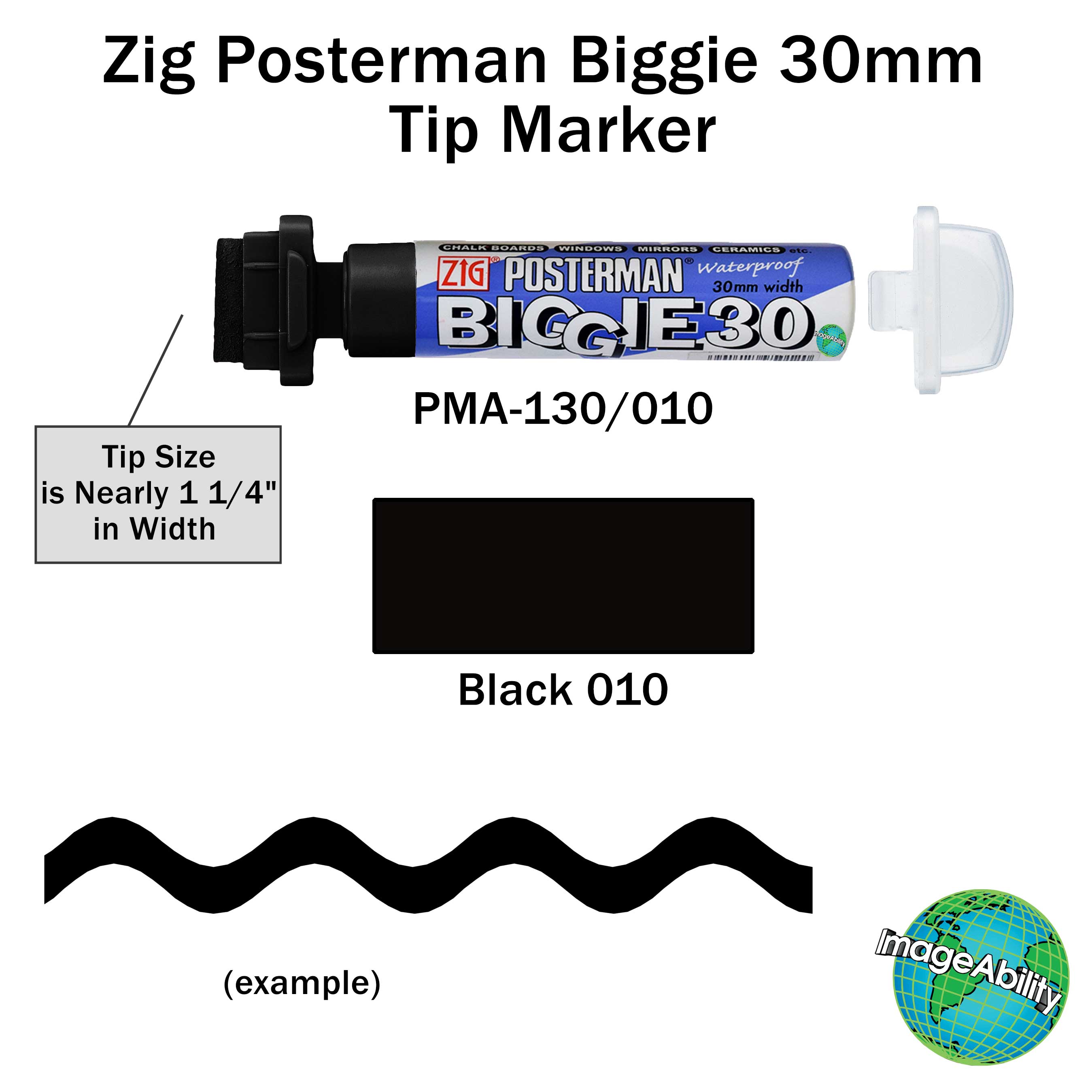 Black waterproof BIGGIE 30mm tip marker features a wide tip for making thick lines. They provide customers a quality liquid chalk ink that is highly opaque and waterproof. The markers can be used on a variety of surfaces, like Cohas products, classic chalkboards, glass, plastic and more. They are perfect for use adding lettering and decorative art to nonporous surfaces.
