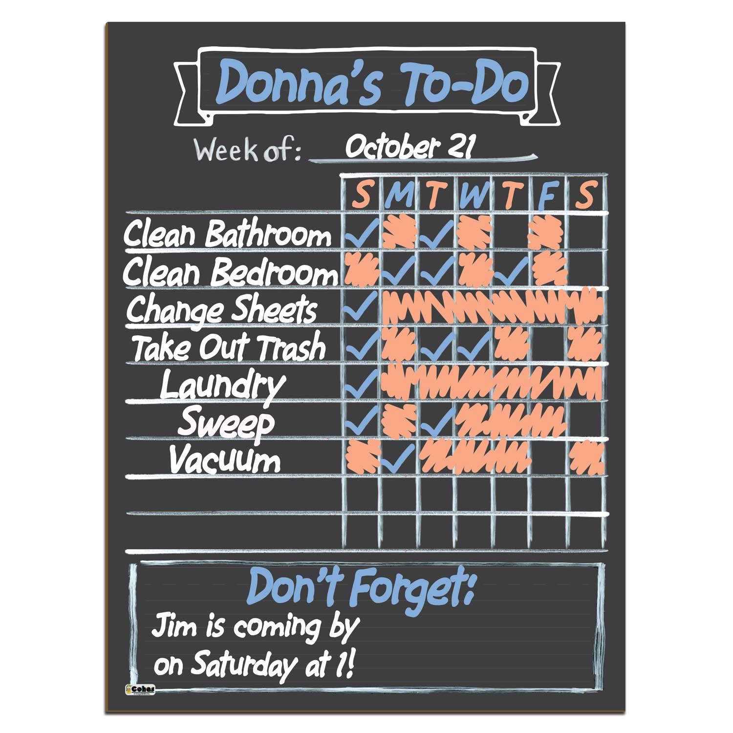 - Each chore chart measures 12 by 16 inches.