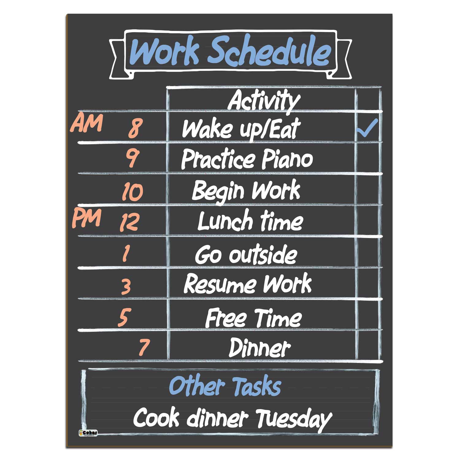 Blank design chalkboard daily planners feature a chalkboard style surface mounted to a hardboard that can be hung on the wall. They are perfect for remote learning and homeschooling schedules each day. The boards feature real chalk lines and boxes to write and mark complete each task; and a box at the bottom of the chart to write notes, rewards, reminders, and words of encouragement for your family.