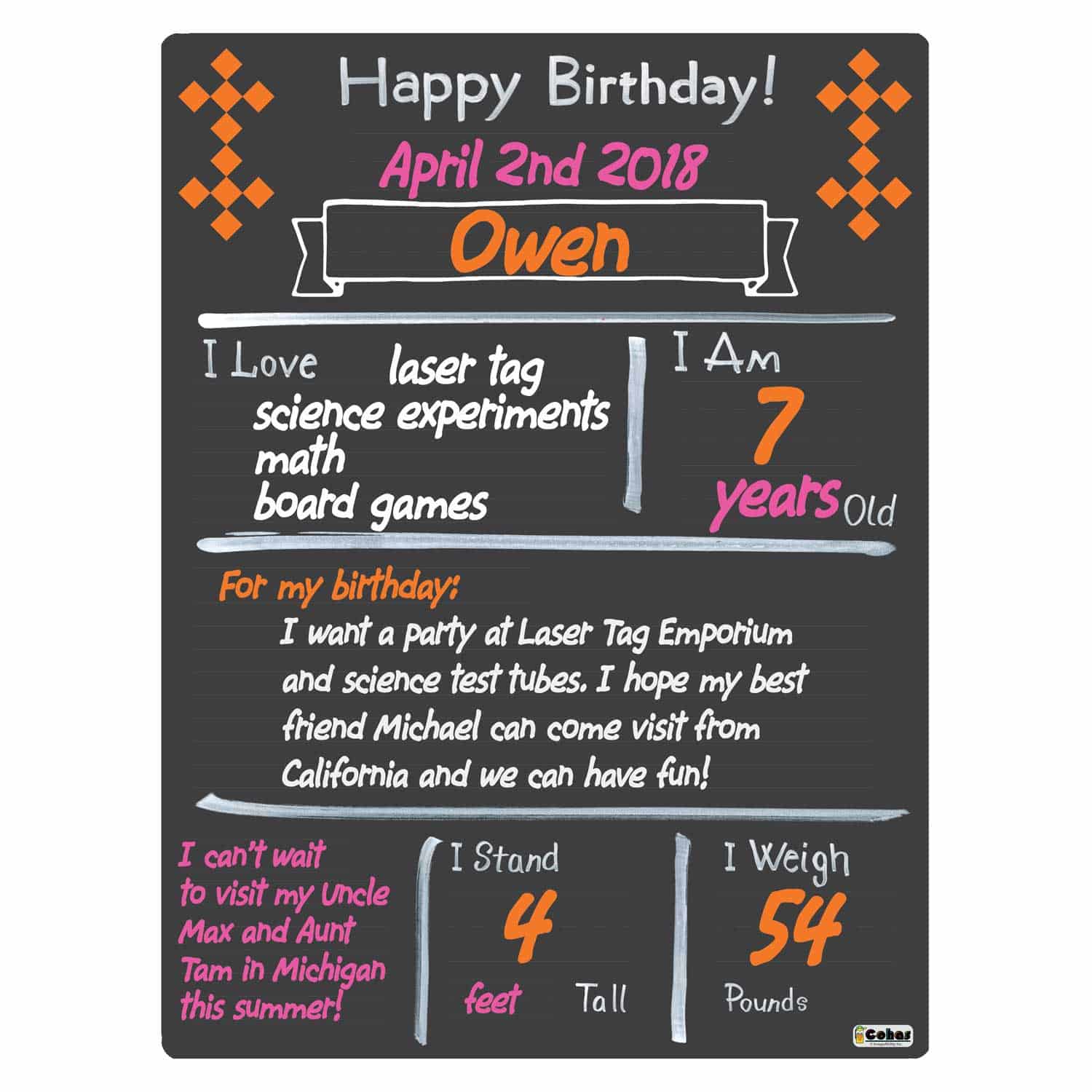 Cohas blank design your own birthday milestone boards are easy to clean and reuse when used with the included or recommended markers. Simply use water and a sponge or paper towels to wipe away lettering and designs. Boards that include a marker kit come with Zig Posterman Wet-Wipe Markers. The chisel marker features a 6mm tip, perfect for making thick and thin lines. The markers will remove easily with water.