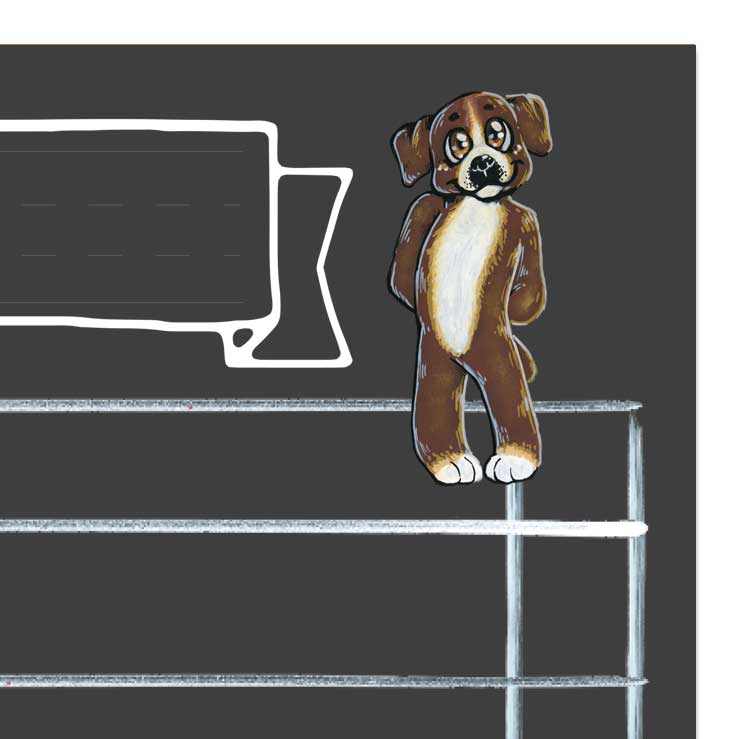 Our artists have hand painted the characters, lines, text, and other elements using liquid chalk markers on a chalkboard. Art is then digitized and embedded for a long-lasting board. The board is made from sustainable and recycled wood material. The board can be hung using the installed hanging system, or framed and hung according to frame instructions.