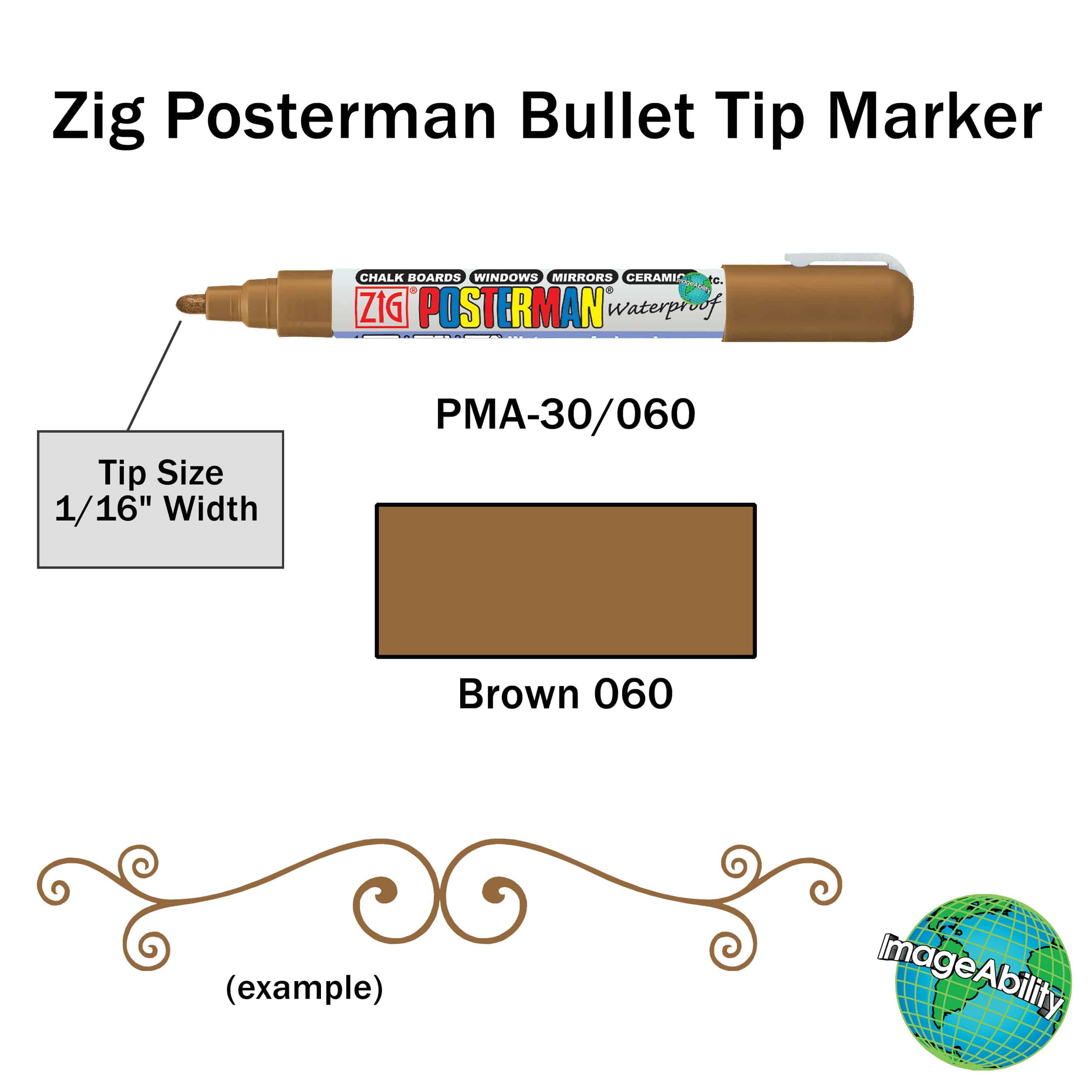 Brown waterproof medium bullet 2mm tip marker features a medium tip for making thin lines. They provide customers a quality liquid chalk ink that is highly opaque and waterproof. The markers can be used on a variety of surfaces, like Cohas products, classic chalkboards, glass, plastic and more. They are perfect for use adding lettering and decorative art to nonporous surfaces.