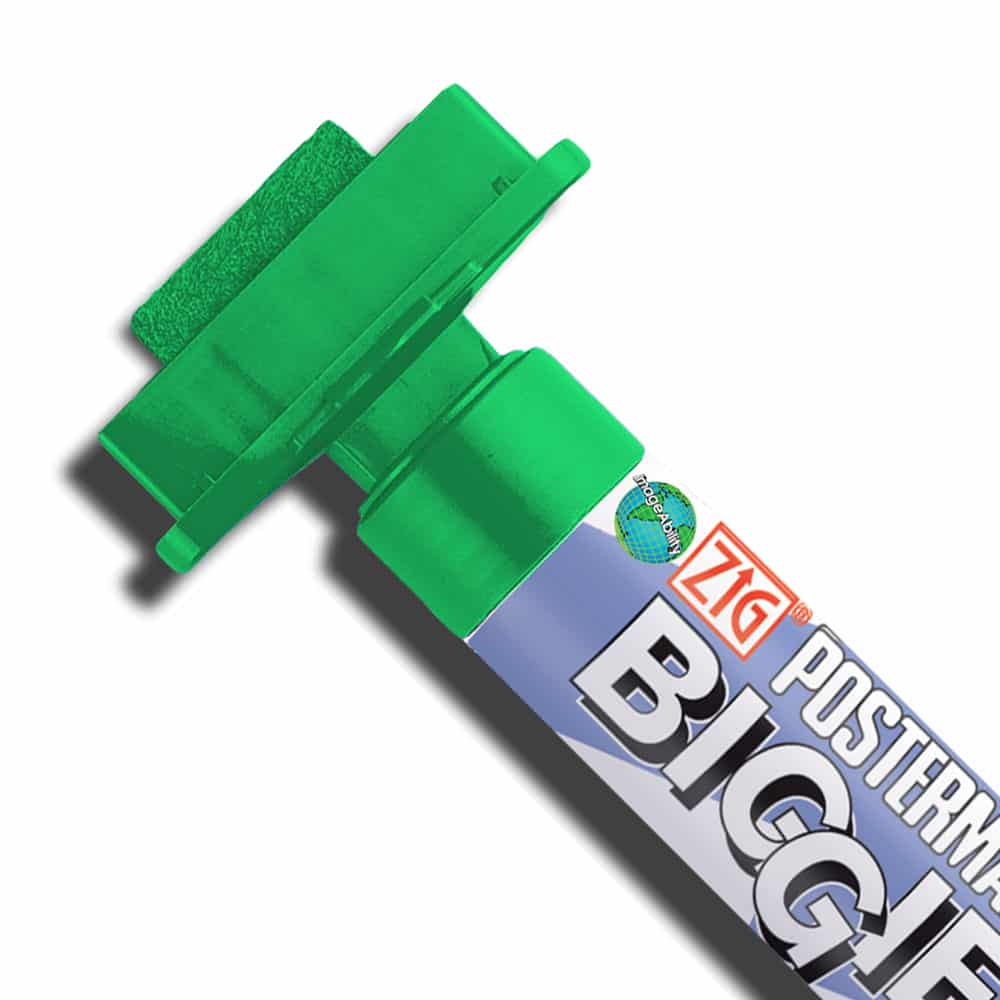 Cohas green waterproof custom 30mm tip marker features a wide tip and long barrel. The marker is a modified Zig Posterman BIGGIE 50mm tip marker, manufactured with a 30mm tip and a long barrel. They provide customers a quality liquid chalk ink that is highly opaque and waterproof. The markers can be used on a variety of surfaces, like Cohas products, classic chalkboards, glass, plastic and more. They are perfect for use adding lettering and decorative art to nonporous surfaces.