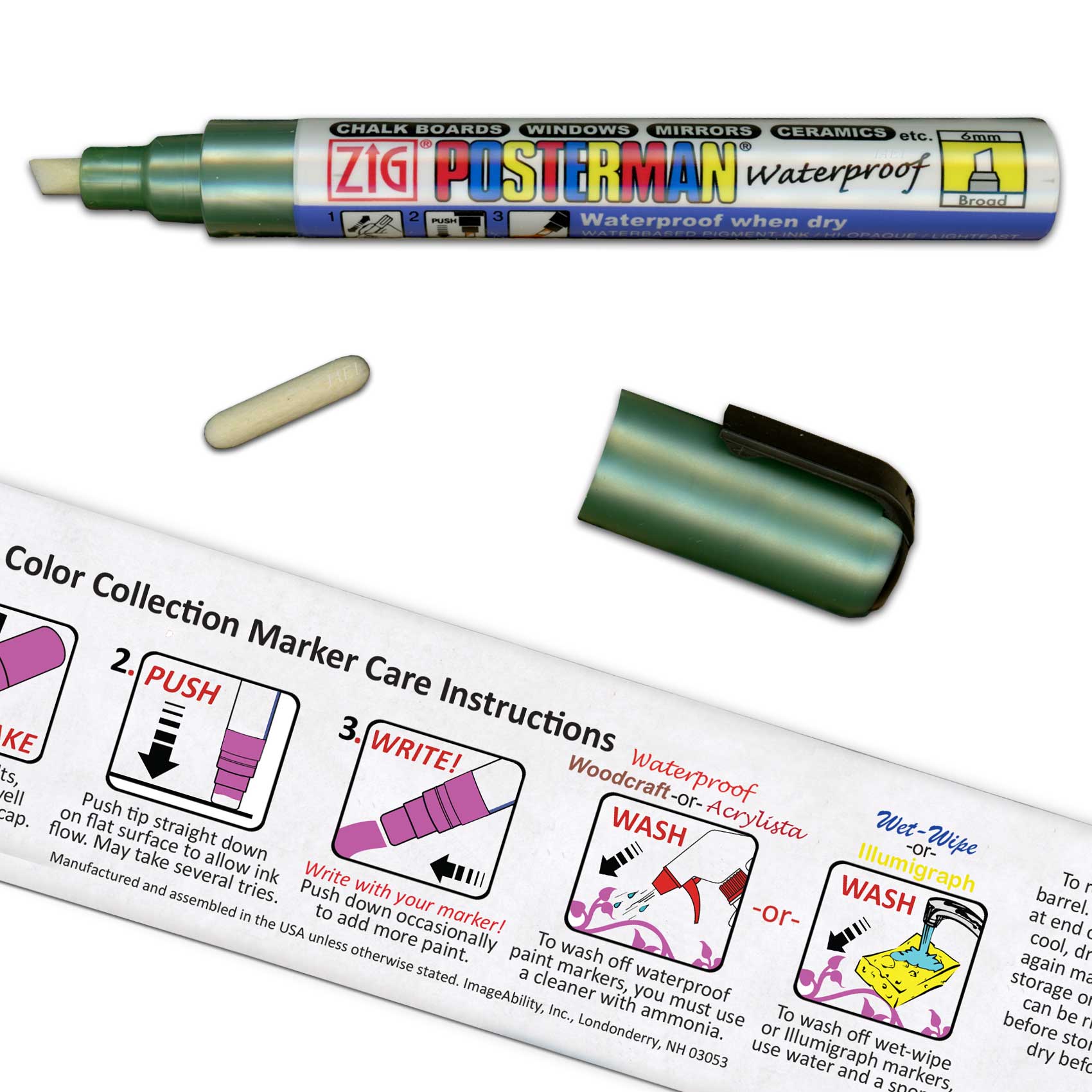 Color Collection Zig Posterman Waterproof 6mm Tip Metallic Green Marker with 2mm Tip