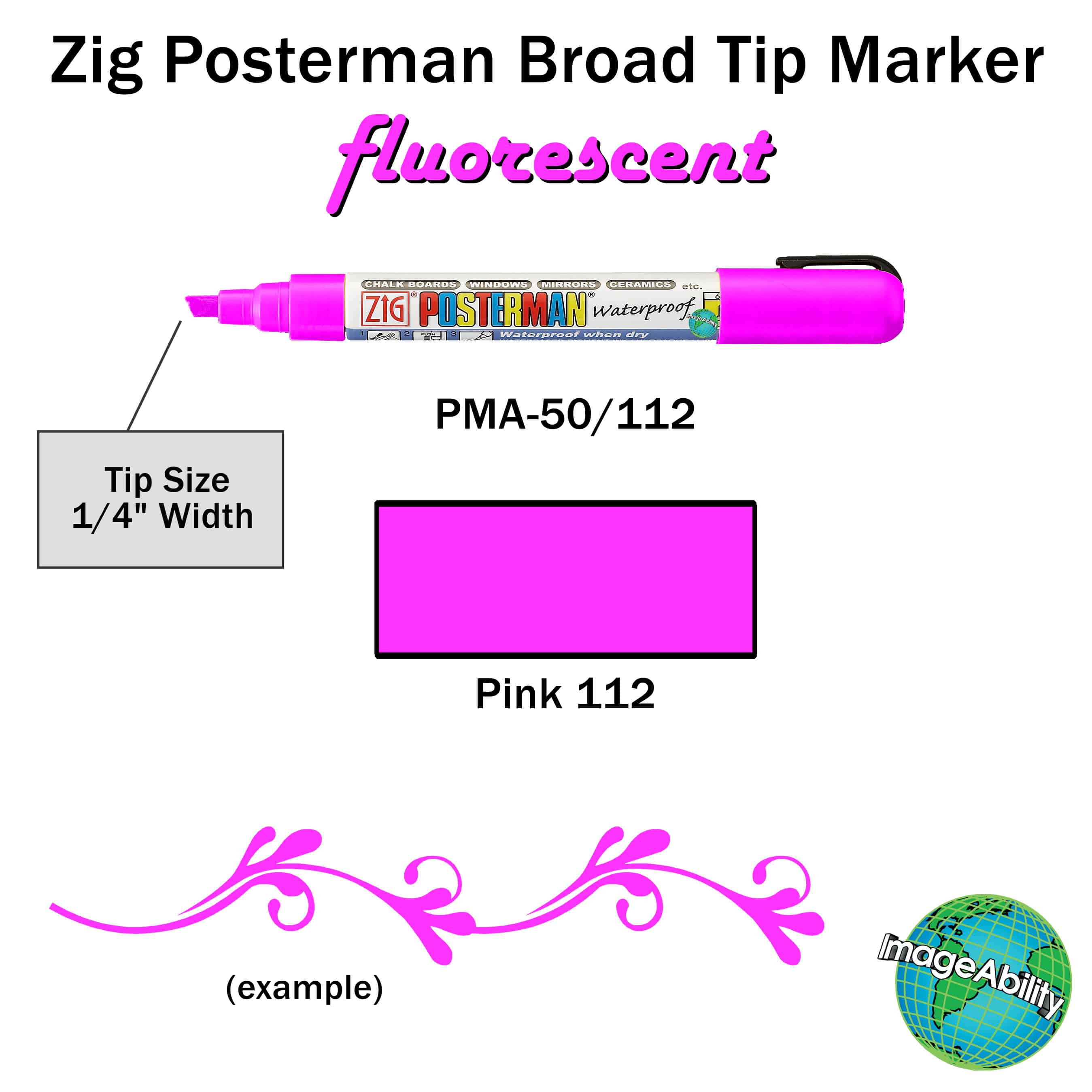 Fluorescent pink waterproof broad chisel 6mm tip marker features a chisel tip for making thin and thick lines. They provide customers a quality liquid chalk ink that is highly opaque and waterproof. The markers can be used on a variety of surfaces, like Cohas products, classic chalkboards, glass, plastic and more. They are perfect for use adding lettering and decorative art to nonporous surfaces.
