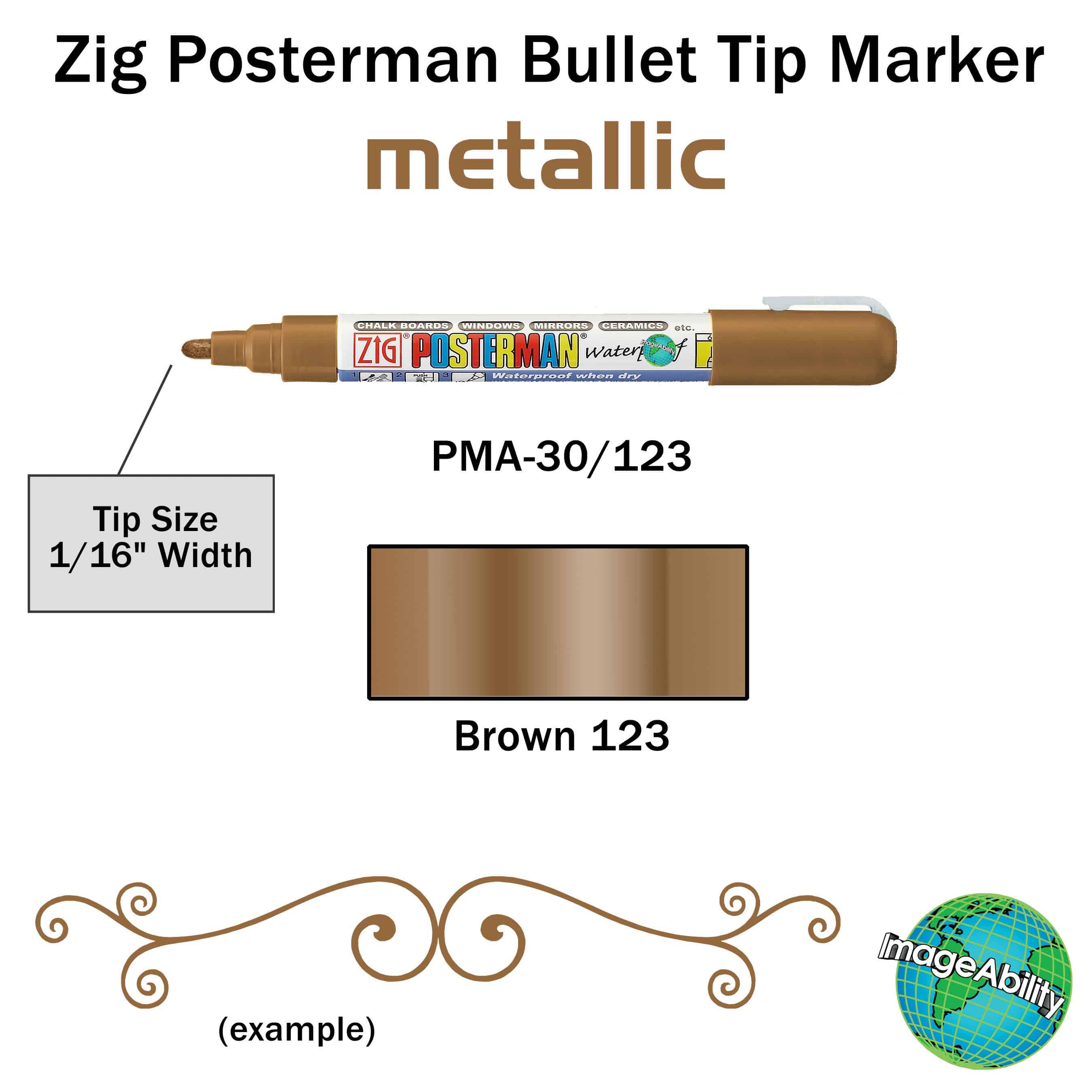 Metallic brown waterproof medium bullet 2mm tip marker features a medium tip for making thin lines. They provide customers a quality liquid chalk ink that is highly opaque and waterproof. The markers can be used on a variety of surfaces, like Cohas products, classic chalkboards, glass, plastic and more. They are perfect for use adding lettering and decorative art to nonporous surfaces.