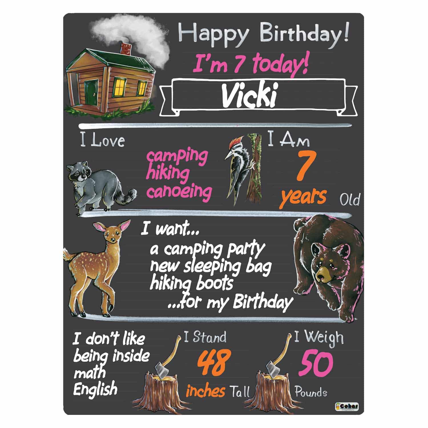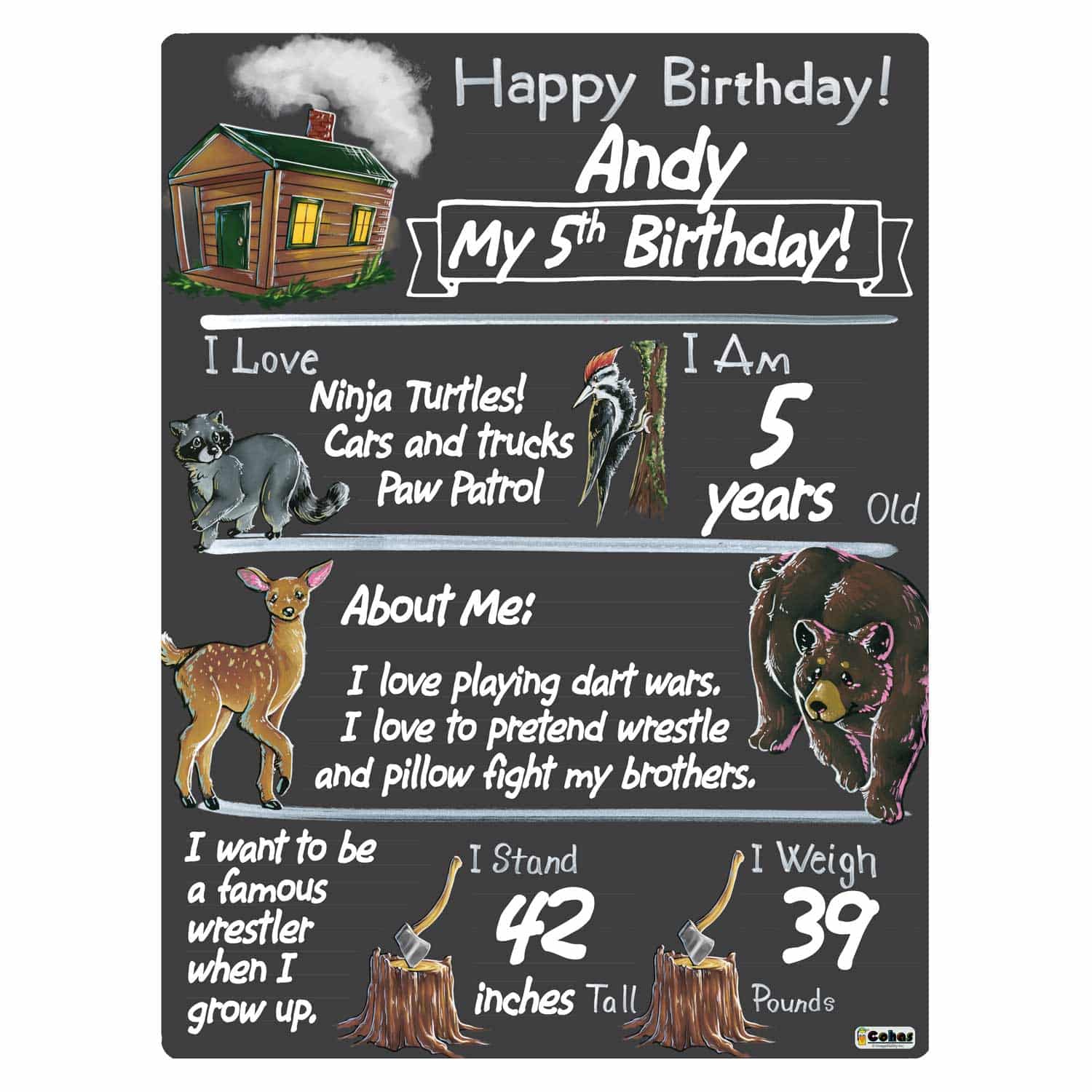 Mountain theme birthday milestone boards feature a chalkboard-style surface and real chalk artwork. They are perfect for capturing memories and watching your children grow year after year. The boards feature faint guidelines, to ensure writing is neat and straight; a matte finish, to reduce glare from cameras and lighting; and round, smooth corners, to prevent scratching or scraping little fingers.