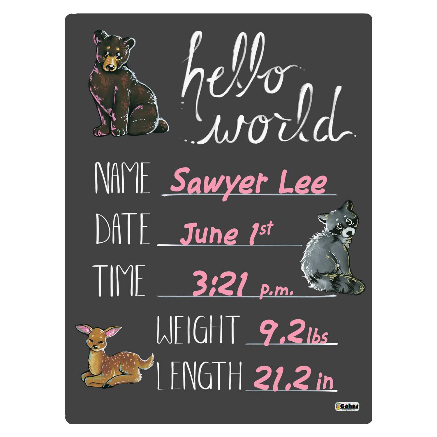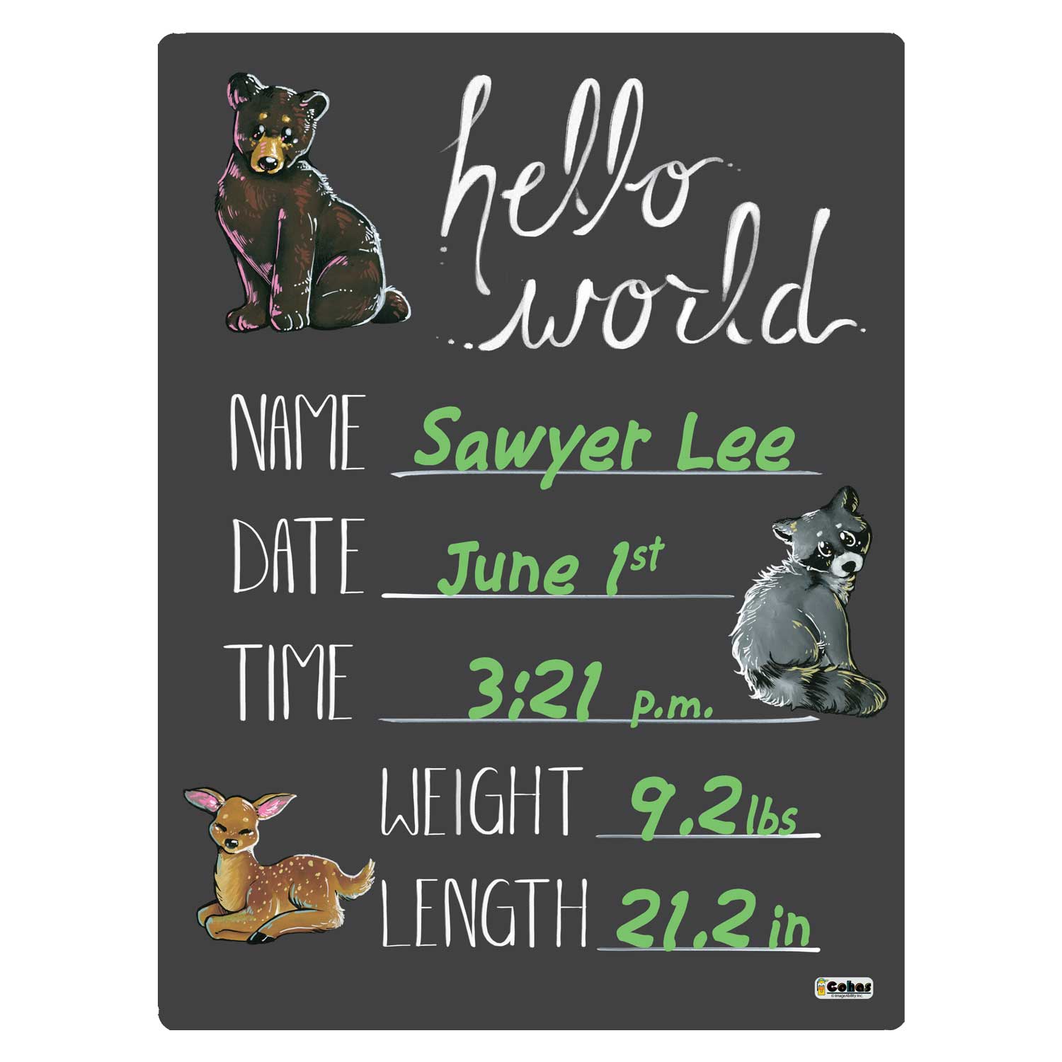 Cohas Baby Announcement Boards are manufactured with materials that are GREENGUARD Gold Certified by UL (Underwriter Laboratories). This means that the materials are safe for use in environments like schools, food service industries, and healthcare facilities.