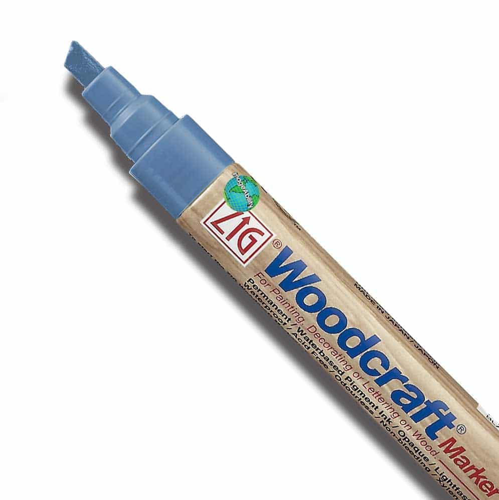 Periwinkle blue waterproof broad chisel 6mm tip Woodcraft marker features a chisel tip for making thin and thick lines. They provide customers a quality liquid chalk ink that is highly opaque and waterproof. The markers can be used on a variety of surfaces, like Cohas products, classic chalkboards, glass, plastic and more. They are perfect for use adding lettering and decorative art to nonporous surfaces.