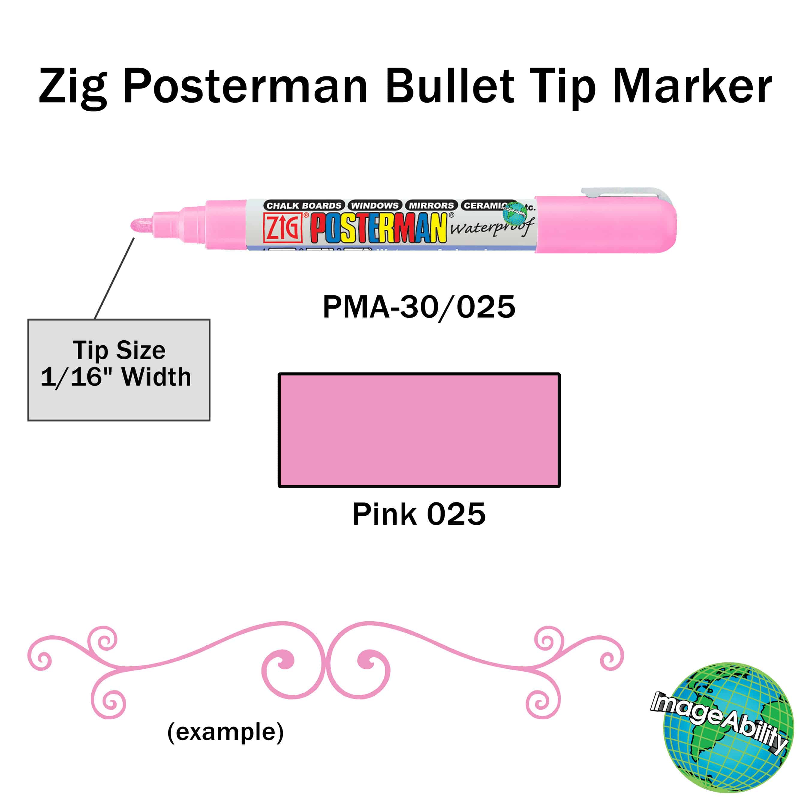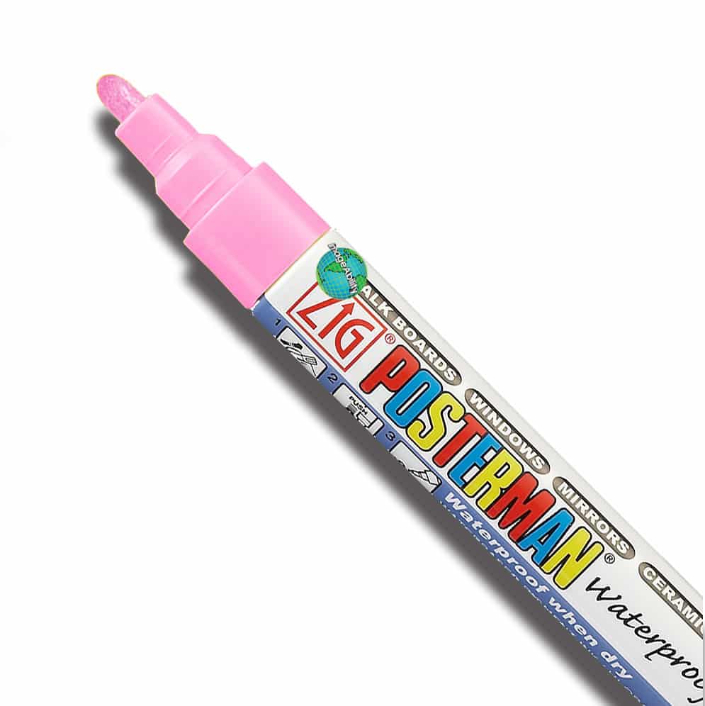 Pink waterproof medium bullet 2mm tip marker features a medium tip for making thin lines. They provide customers a quality liquid chalk ink that is highly opaque and waterproof. The markers can be used on a variety of surfaces, like Cohas products, classic chalkboards, glass, plastic and more. They are perfect for use adding lettering and decorative art to nonporous surfaces.