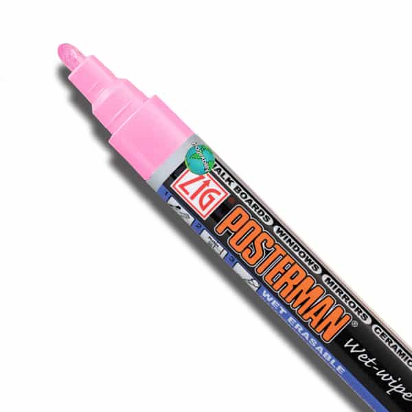 Pink wet-wipe medium bullet 2mm tip marker features a medium tip for making thin lines. They provide customers a quality liquid chalk ink that is highly opaque. The markers can be used on a variety of surfaces, like Cohas products, classic chalkboards, glass, plastic and more. They are perfect for use adding lettering and decorative art to nonporous surfaces.