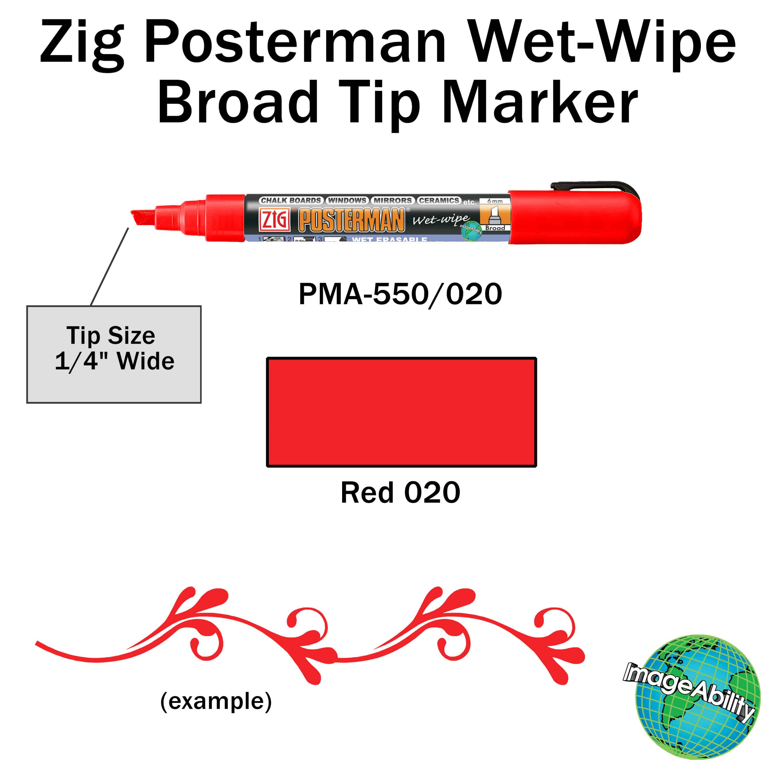 Red wet-wipe broad chisel 6mm tip marker features a chisel tip for making thin and thick lines. They provide customers a quality liquid chalk ink that is highly opaque. The markers can be used on a variety of surfaces, like Cohas products, classic chalkboards, glass, plastic and more. They are perfect for use adding lettering and decorative art to nonporous surfaces.